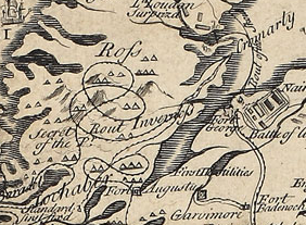 1745 Chevalier versus Sir John Cope move toward pass of Corry Arrack. This mountain is ascended by a part of Marshal Wade’s military road, which attains the summit by a long succession [seventeen] of zig-zags, or traverses, gaining slowly and gradually on the steep and rugged elevation on the south side, the Devil’s Staircase.