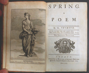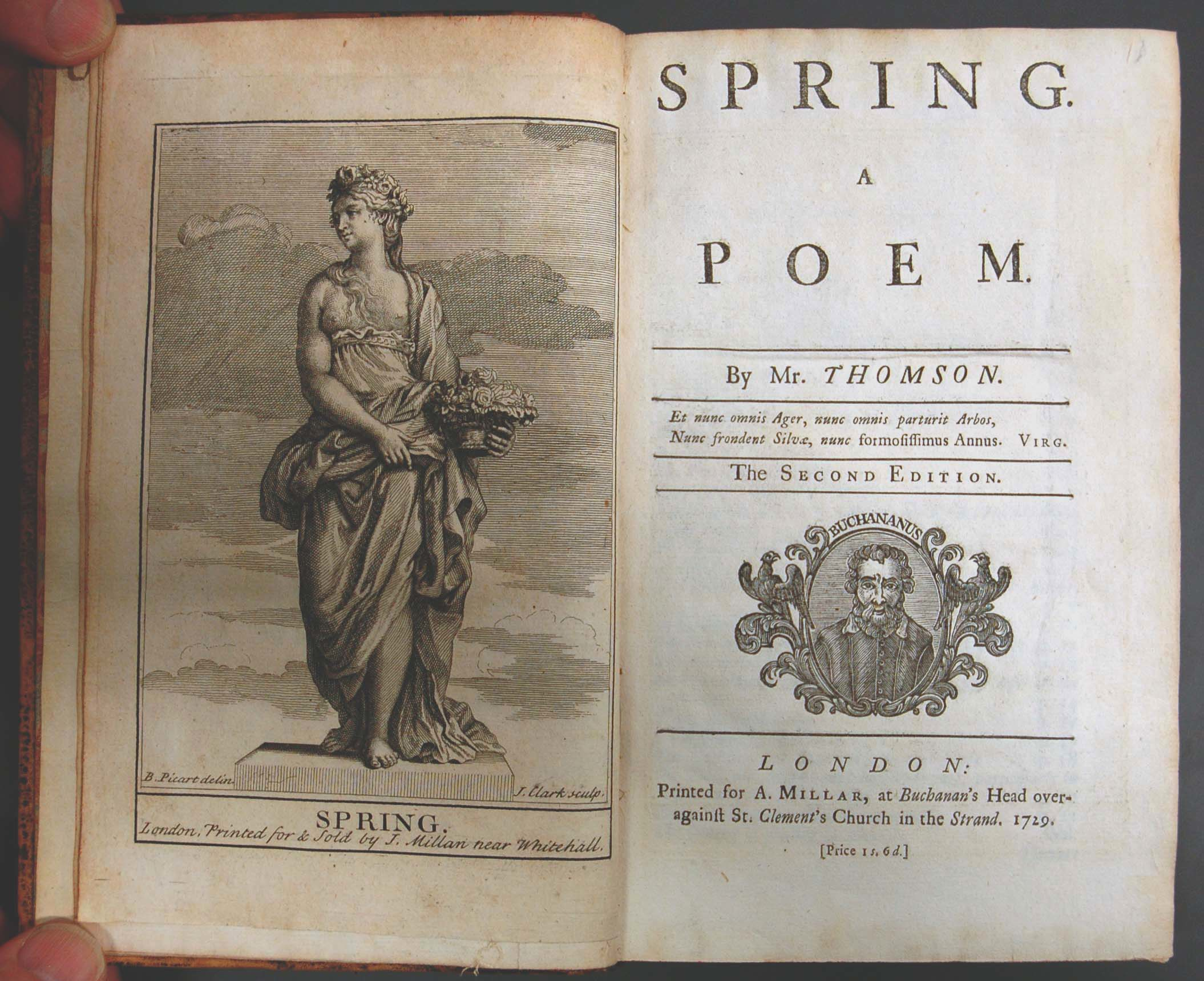 Spring a Poem etc. London Printed for A. Millar, at Buchanan’s Head over against St. Clement’s Church in the Strand. 1729.
