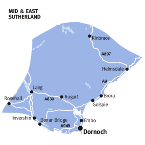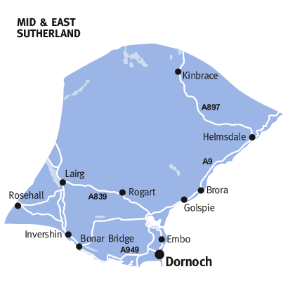 Mid East Sutherland and Dornoch. long bite of the Dornoch Firth and the Kyle of Sutherland.